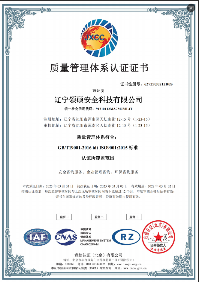 遼寧領(lǐng)碩安全科技有限公司位于遼寧省沈陽市渾南區(qū)天壇南街12-15號(hào),注冊(cè)資金300萬。主要經(jīng)營范圍為遼寧省范圍內(nèi)的安全環(huán)保咨詢,生產(chǎn)安全事故應(yīng)急預(yù)案技術(shù)服務(wù)、企業(yè)雙重預(yù)防機(jī)制建立、履職能力評(píng)估、企業(yè)科研項(xiàng)目安全部分服務(wù)等的技術(shù)服務(wù)機(jī)構(gòu)。現(xiàn)有員工12人,其中包括5名遼寧省級(jí)安全生產(chǎn)專家。成立于2022年4月18日,在盤錦市成立至今已經(jīng)為30余家企業(yè)提供了安全環(huán)保技術(shù)咨詢。 業(yè)務(wù)范圍包括:技術(shù)服務(wù)、技術(shù)開發(fā)、技術(shù)咨詢、技術(shù)交流、技術(shù)轉(zhuǎn)讓、技術(shù)推廣,安全咨詢服務(wù),環(huán)保咨詢服務(wù),標(biāo)準(zhǔn)化服務(wù),企業(yè)管理咨詢,科技中介服務(wù),工程管理服務(wù),特種作業(yè)...查看更多
